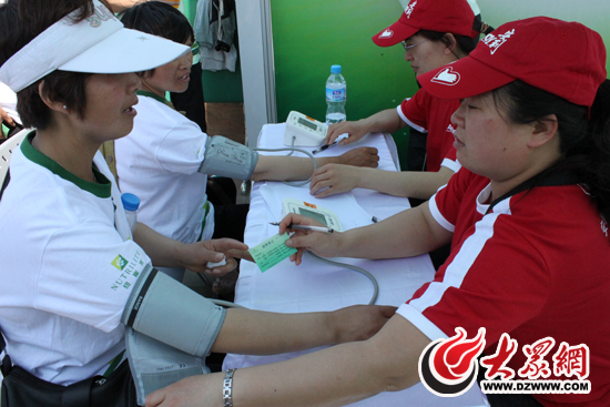 [提要] 棗莊安利志愿者何勤芝正在為紐崔萊健康跑參與者進(jìn)行健康體驗(yàn)