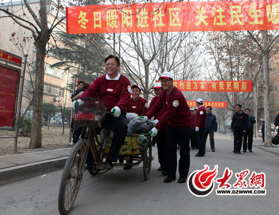 淄博安利志愿者王岫利老師帶領(lǐng)志愿者一車車將煤炭送到孤寡老人家中