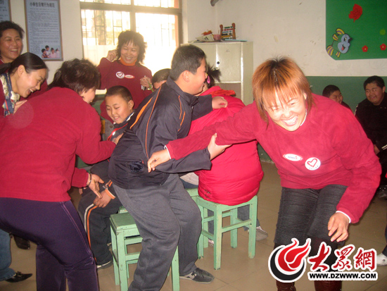濟寧安利志愿者陳敏與特教學(xué)生玩游戲