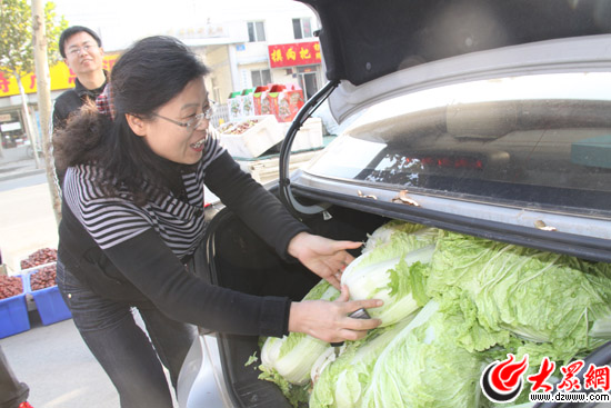 今天清晨,當(dāng)濟(jì)南市歷城區(qū)唐王鎮(zhèn)柴家村6戶菜農(nóng)拉著滿滿兩車大白菜趕往市區(qū)直銷點(diǎn)的時候,齊魯手機(jī)報(bào)的熱心讀者徐女士也正從30公里外的仲宮鎮(zhèn)驅(qū)車趕往市區(qū)。今天,徐女士沒有像往常一樣,趁著周末在家睡個懶覺,她今天的目的地也不是市中心有打折活動的商場,而是本網(wǎng)“今冬請吃愛心菜”活動的直銷點(diǎn)之一——百花小區(qū)。