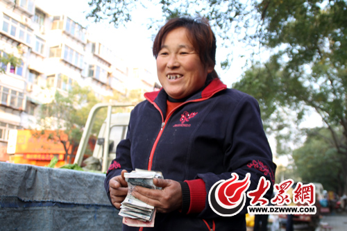 菜農(nóng)王興娜高興的算著一天下來的收入