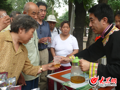 大眾網(wǎng)濟(jì)南6月6日訊(大眾網(wǎng)-生活日?qǐng)?bào)聯(lián)合報(bào)道組 記者 曹亮 劉國(guó)棟 王磊)今天上午8點(diǎn),由大眾網(wǎng)、生活日?qǐng)?bào)等媒體發(fā)起的“今夏請(qǐng)喝北川茶,感恩山東之旅”公益活動(dòng)走進(jìn)濟(jì)南市赤霞廣場(chǎng),附近小區(qū)居民紛紛聞?dòng)嵍鴣?lái),具有“降血糖、降血脂、降尿糖”等功效的苦蕎茶最受人們歡迎,許多年輕市民更是把北川苦蕎茶作為禮物送給自己的父母,在獻(xiàn)愛(ài)心的同時(shí),盡一份孝心。