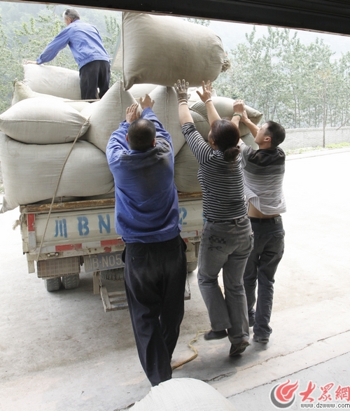 俏泉茶業(yè)在茶園基地將成品茶葉運往擂鼓鎮(zhèn)包裝上市