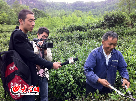 大眾網(wǎng)記者現(xiàn)場采訪正在修剪茶樹的茶農(nóng)