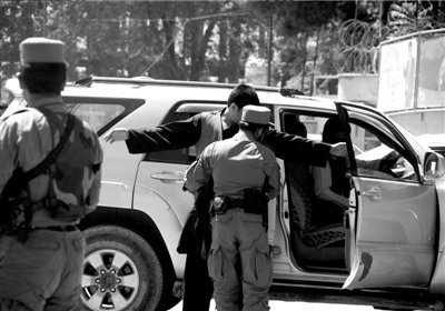 ▲5月2日,美國(guó)駐阿富汗大使館安保人員加強(qiáng)戒備,盤查過往車輛。 新華社發(fā)