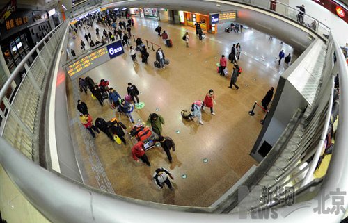 宋建國:進入春運第一天,北京西站預(yù)計當(dāng)天發(fā)送旅客要超過16萬人,到達旅客預(yù)計超過15萬人,比去年(2010年)春運的同期增長19.4%,主要客流是學(xué)生流、農(nóng)民工流、探親流相互疊加,為了確保旅客的安全,已經(jīng)在進站通廊設(shè)置了隔離帶,并設(shè)置了專人進行引導(dǎo)。