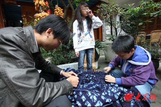 許多外地的游客來到周城村民家中,體驗扎染工藝。