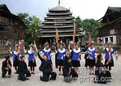 貴州、湖南一帶的侗族同胞,春節(jié)期間盛行一種“打侗年”(又叫蘆笙會(huì))的群眾活動(dòng)。這種活動(dòng)類似漢族的“團(tuán)拜”,只不過比“團(tuán)拜”顯得更加歡樂、熱烈。這種活動(dòng)一般是由兩個(gè)村莊共同商定舉辦的。兩隊(duì)在廣場(chǎng)上正式舉行蘆笙歌舞比賽。這時(shí)兩個(gè)村莊的觀眾,伴隨著樂曲,翩翩起舞,盡情地歡樂。