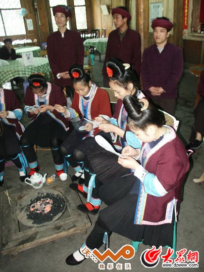 10年前銀水侗寨中的侗族青年男女們以傳統(tǒng)的侗族習(xí)俗開始了民族文化旅游。