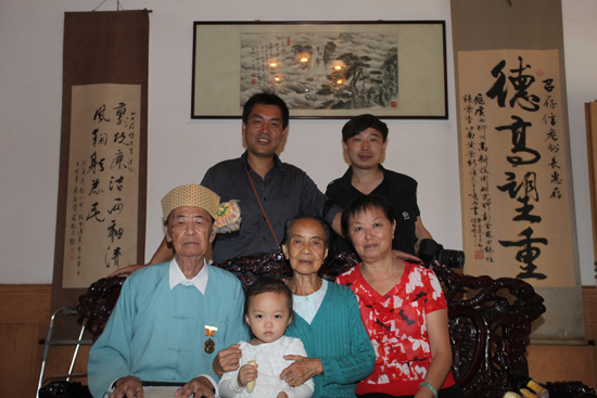 記者同召存信夫婦以及他的女兒和重孫女合影