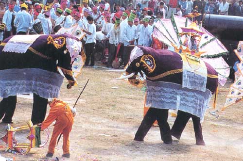 傣族群眾從各種方式來表示對象的崇拜,主要有:一、象雕塑。有佛象木雕、戰(zhàn)象木雕、家象木雕、象石雕和隨處可見的泥雕塑象。二、象織錦、象壁畫、象工藝美術(shù)品。象壁畫集中在佛寺的墻上,而最精美的藝術(shù)品要數(shù)傣族女手工織成的織綿上栩栩如生的象圖案。三、象音樂與象舞蹈。在傣族的節(jié)慶和宗教活動中,只要在群眾聚會的地方,你都能聽到一陣陣有節(jié)律的钅芒 鑼聲,都能看到象腳鼓舞和白象舞。