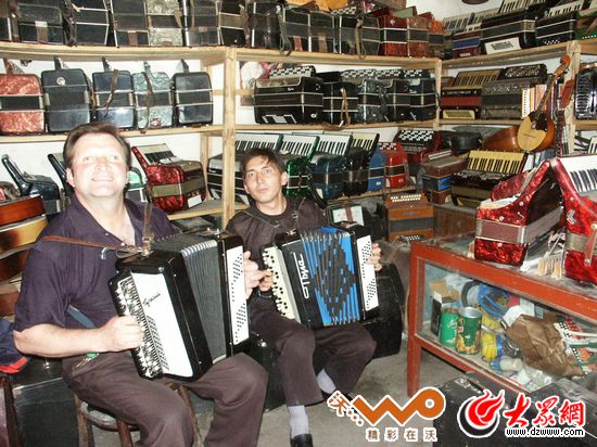 9年前亞歷山大在他的手風(fēng)琴修理鋪里與前來(lái)向他學(xué)琴的各族朋友快樂地演唱。