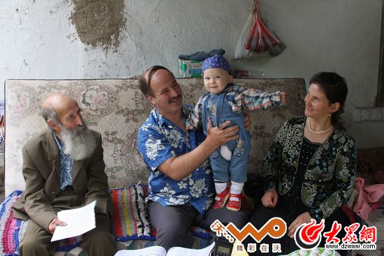 盧尼奧夫·尼古拉·伊萬諾維奇(左二)是伊寧惟一的俄羅斯學(xué)校的校長。他與妻子薇拉(右)育有2個(gè)女兒1個(gè)兒子,兒子剛滿1歲,活潑可愛。左邊大胡子的是他父親,一位哥薩克騎兵。