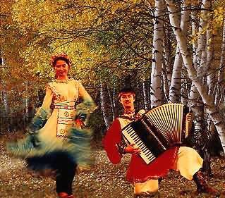 在民間許多節(jié)日喜慶或娛樂晚會中,熱烈奔放、活潑開朗的俄羅斯民間舞蹈是不可缺少的娛樂節(jié)目。為這些舞蹈伴奏的音樂,多是以獨(dú)唱或?qū)Τ问窖莩奈璧感远谈,或者以民間樂器演奏的樂曲。俄羅斯民間流傳的舞蹈歌曲數(shù)量很多,它們多內(nèi)容詼諧、風(fēng)趣,曲調(diào)活潑明快,結(jié)構(gòu)方整,并可即興填詞,既適于伴奏舞蹈也可單獨(dú)演唱;舞蹈音樂的曲調(diào)一般來源于民歌,但也有少量專門的舞曲如《卡林努什卡》《米爾卡》《阿金諾奇卡》等。歌舞音樂多是在喜慶娛樂的場合中所唱的短歌,數(shù)量很多,結(jié)構(gòu)方整,宜于即興填詞。多用拍,音域在八度與十度以內(nèi),內(nèi)容詼諧、風(fēng)趣,具有簡潔、明快的特點(diǎn)。