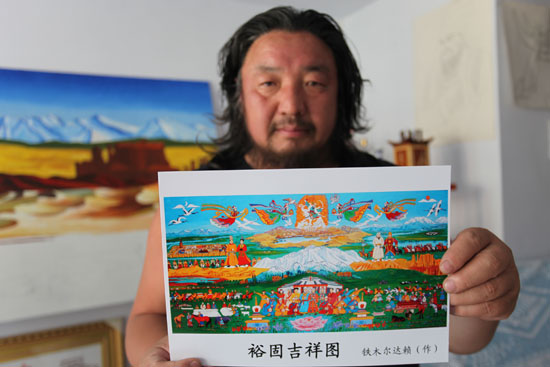 鐵穆爾達(dá)萊為肅南縣北方游牧民族文化廣場做的主題畫