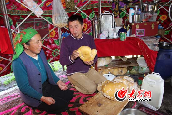 吐爾汗別克回到那拉提空中草原,在鄰居家中,手捧裝滿酥油的羊肚子,討論著今年的收成