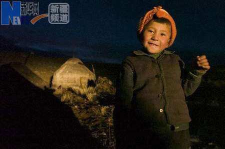 11月2日,新疆阿勒泰地區(qū)富蘊(yùn)縣的哈薩克族小朋友胡萬別克在自家的氈房前玩耍。