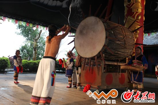以前每個(gè)基諾村寨都要有兩面基諾大鼓,一面用于祭祀,一面用于群眾娛樂活動(dòng)跳基諾大鼓舞。但是現(xiàn)在各村寨都難見基諾大鼓的身影了,只有在一個(gè)基諾旅游景點(diǎn)中,太陽鼓才作為道具存在,也徒有其形了