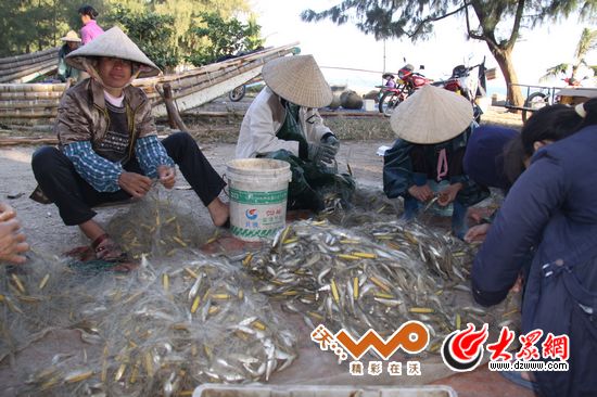 京族人靠海吃海,批發(fā)價10塊錢的沙丁魚,一天下海撒網(wǎng)兩次,一網(wǎng)就能捕到100多斤,收入不菲。