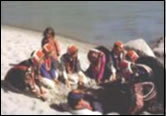 [提要] 每年農歷正月初四,傈僳族男女青年都匯集在怒江沙灘上,舉行“沙灘埋情人”儀式。取鬧嬉笑夠后才將意中人從坑中扶起來,爾后與他締結美滿姻緣!吧碁┞袂槿恕辈粌H為了取鬧,還有將意中人身上的“死神”埋去,使他長命百歲、吉祥安康之意。
