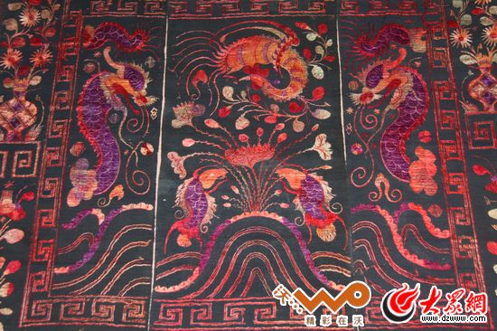 這是一套完整的代表了黎族棉紡織最高水平的清末時(shí)期龍被,雖然歷經(jīng)百年,但色彩紡線依舊如新。龍被技藝卻已失傳。