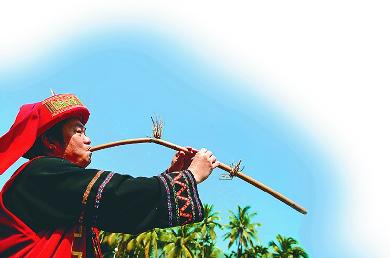 每當(dāng)夜幕降臨,寂靜的黎寨里,不時(shí)傳來(lái)陣陣的纖細(xì)而清幽的簫聲,這是黎家小伙子在吹簫召喚女友,或是姑娘以簫聲回答男友。以前黎家青年男女都會(huì)吹奏鼻簫,而所吹的鼻簫,一般多為即興吹奏,其曲調(diào)也因人而異。難怪黎族姑娘可以根據(jù)樂曲和音色的不同,能夠在很多的簫聲中辨認(rèn)出自己戀人那獨(dú)特的簫聲來(lái)!皰亗(gè)石頭探水深,吹曲鼻簫試儂心”。從這句黎族情歌中可看出,鼻簫與黎族青年的戀愛生活有著密切關(guān)系。(記者于偉慧/文李幸璜/圖)