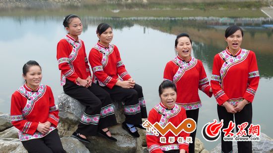 我們住的環(huán)江賓館中的服務(wù)員全是毛南族,她們賓館的江邊為我們演唱毛南族《迎客歌》