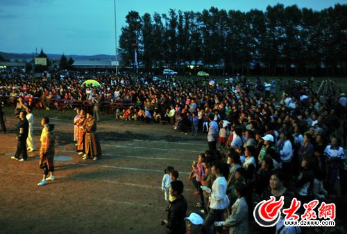 鄉(xiāng)親們趕到諾敏鎮(zhèn)觀看篝火晚會(huì)