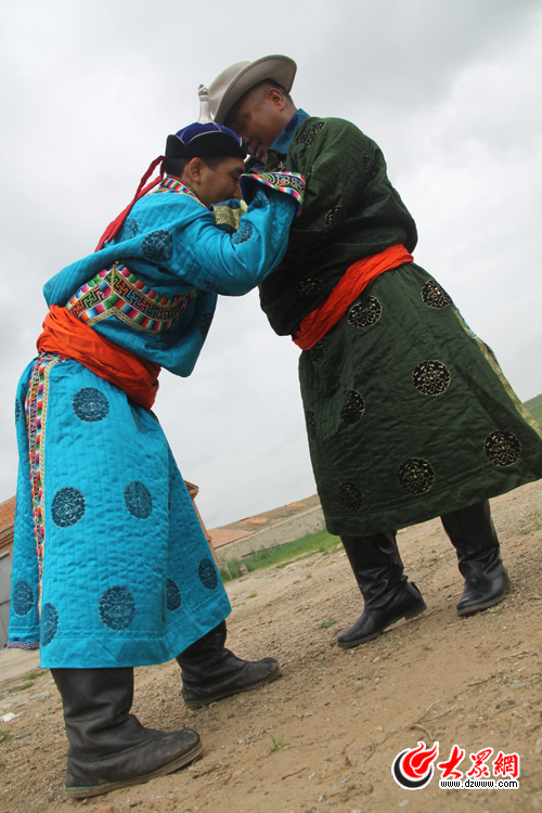東日布和達(dá)萊父子倆平時(shí)沒事的時(shí)候經(jīng)常在一起切磋搏克技藝。