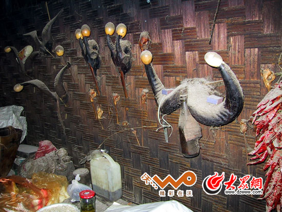 上得山來,驚訝地發(fā)現(xiàn),歐得得家與十年前相比,幾乎沒有什么變化,包括墻上的羊角,以及羊角上的蛋殼
