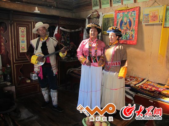格桑次里老人在彈唱普米傳統(tǒng)民歌