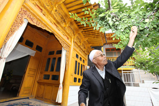 在自家的撒拉小院里程種的三株杏樹(shù)成熟了,韓占祥新手摘杏款待朋友