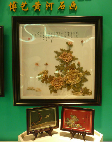 “黃河石藝”用天然石材制成,這些畫品皆具有天然的立體感,放在一起,則會產(chǎn)生“橫看成嶺側(cè)成峰”的效果。