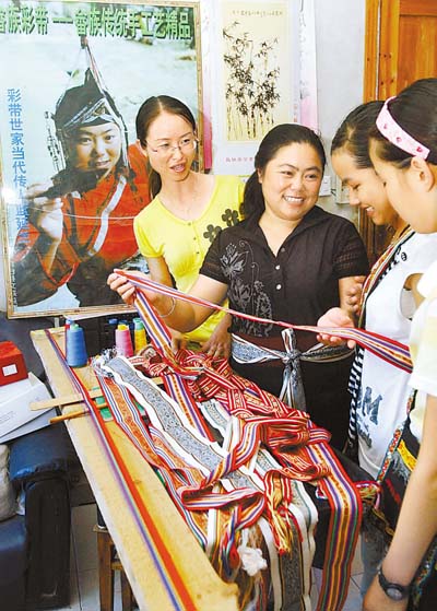 彩帶是畬族文化“活”著的“文物”,其編織工藝的傳承完全靠口傳身授,目前瀕臨失傳。