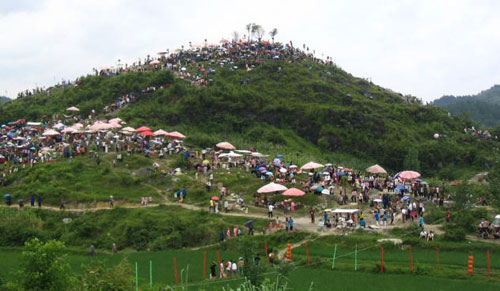 卯坡,位于貴州省黔南布依族苗族自治州三都水族自治縣九阡鎮(zhèn)水各大寨,是水族青年男女以歌傳情、以歌示愛,尋找意中人的地方;▊阆,叢林中,一堆堆青年男女早已對起了情歌。他們或兩個成對,或三五成群,輕輕的唱著歌——眉目傳情,歌聲示愛,實在幸福極了。