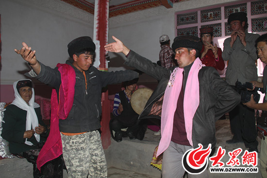 塔吉克族小伙子們?cè)谔椢?/P>