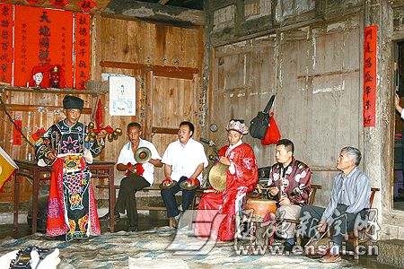 土家先民喜歌舞、重祭祀的習(xí)俗歷史久遠(yuǎn),唐宋以來,土家民間流傳的歌樂與鼓舞相結(jié)合的巴歌《踏蹄》已具有祭祀、娛神的特征。南宋朱熹《楚辭集注》載:“昔楚南郢之邑,沅湘之間,其俗信息而好祀,其祀必使巫覡作樂,歌舞以娛神……”明清以來,在土家族民間出現(xiàn)了專門從事祭祀活動的“巫師”,即朱熹所說的“巫覡”,土家人稱其為梯瑪,民間又俗稱“土老司”,是他們口傳心授,將八寶銅鈴舞傳承至今。