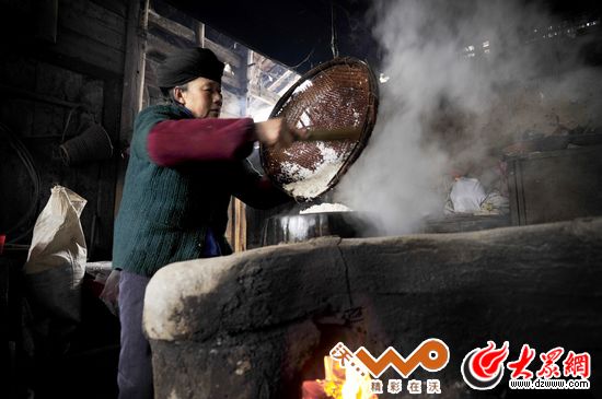 進(jìn)入年末臘月,土家阿婆開始打糍粑,圓圓的糍粑象征團(tuán)團(tuán)圓圓