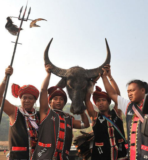 解放后,隨著物質(zhì)文化生活的不斷提高,佤族把牛頭存放在家里,作為珍藏品。把牛頭存放的多少作為衡量一個(gè)家族或家庭財(cái)富多少的標(biāo)準(zhǔn),牛頭存放多的人家就是最富有的。除此之外,牛頭還是佤族吉祥如意、幸福安康、招財(cái)進(jìn)寶的良好祝愿,是民族團(tuán)結(jié)、和平共處的象征。