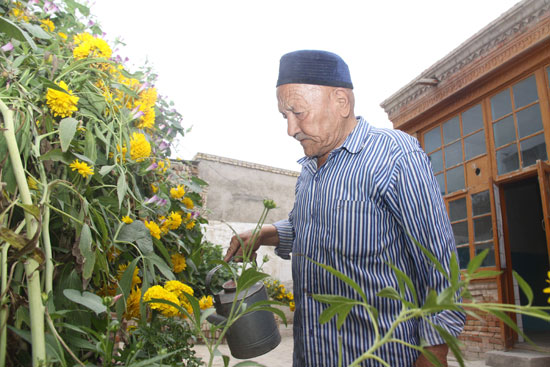 黑亞孜老人閑暇時還喜歡擺弄擺弄花草
