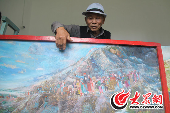 何興謙老人向記者介紹《西遷圖》