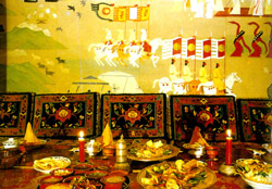 3.血腸:在細牛腸里灌牛血和糌粑;在粗牛腸里灌牛肉、牛油、肚子和糌粑。