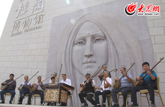 大眾網(wǎng)--聯(lián)通3G若羌9月3日報道(特約記者 施曉亮 記者 王磊)8月初,“黨旗漫卷中國紅——走進56個民族家庭”采訪團走進新疆,在樓蘭國(鄯善)的木卡姆村我們有幸在葡萄架下聆聽了維吾爾族非遺傳承人彈唱的《吐魯番木卡姆》;9月3日,在此行新疆的最后一站、漢代樓蘭國屬地若羌,在樓蘭美女的陪同下,我們再一次有幸聽到優(yōu)美動聽、滄涼凄美的維吾爾族民間藝人集體彈唱的《若羌賽乃姆》,對這個世代生活在羅布泊旁的民族有了進一步的了解。