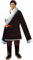藏袍是藏族的主要服裝款式,種類很多,從衣服質(zhì)地上可分錦緞、皮面、氆氌、素布等、藏袍花紋裝飾很講究,過去僧官不同品級,嚴(yán)格區(qū)分紋飾。藏袍較長,一般都比身高還長,穿時要把下部上提,下擺離腳面有三、四十公分高、扎上腰帶。藏袍可分牧區(qū)皮袍、色袖袍、農(nóng)區(qū)為氆氌袍,式樣可分長袖皮袍,工布寬肩無袖、無袖女長袍和加珞花領(lǐng)氆氌袍,男女穿的襯衫有大襟和對襟兩種,男襯