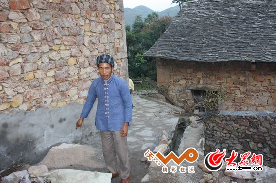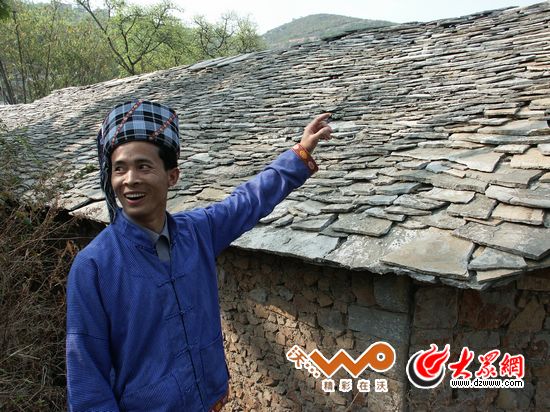 10年前的照片,布依小伙向記者夸耀滑石哨布依石片房。