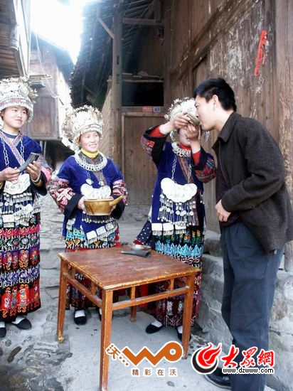 10年前拍的照片,進苗寨要喝12道進寨酒、攔門酒(張曉偉攝)