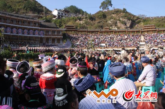 從五湖四海趕來雷山觀看鼓藏節(jié)的游客擠滿了整個體育場