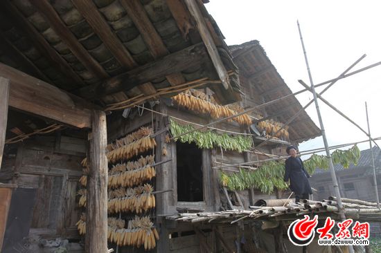 三都縣三洞鄉(xiāng)板龍村一位老人在自己傳統(tǒng)的老宅勞作(施曉亮攝)