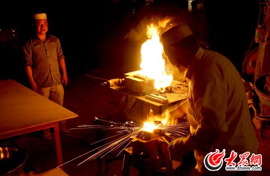 保安腰刀是保安族傳統(tǒng)的手工藝品,包含了數(shù)百年傳承的精湛技藝和悠久濃郁的歷史文化。這就是保安族腰刀的傳承人馬維雄。馬維雄全家四代打刀,現(xiàn)在,隨著科技的發(fā)展,一年前,馬維雄父子創(chuàng)辦了網(wǎng)站,讓更多的人了解保安刀,而且也帶動(dòng)了保安腰刀的銷量。保安腰刀中最具有代表性的是折花刀,制作工藝復(fù)雜,刀身剛?cè)嵯酀?jì),不易折斷,刀刃鋒利無(wú)比。這就是馬維雄打制的腰刀。一把普通的折花刀在打制的時(shí)候要用40片鋼和40片鐵,經(jīng)過(guò)數(shù)千次反復(fù)鍛打之后才能達(dá)到鋼與鐵的水乳交融,才能達(dá)到制作折花刀的標(biāo)準(zhǔn)。現(xiàn)在,氣壓錘已經(jīng)被應(yīng)用到打造過(guò)程中。相對(duì)于純手工的捶打,更精密,更省時(shí)。但就是這樣一把折花刀,制作起來(lái)也要花上二十天左右的時(shí)間。經(jīng)過(guò)反復(fù)打磨和折花,折花刀上就出現(xiàn)了青白相間的流線型花紋。馬維雄制作的腰刀賣了上百把,最低的幾百元,最高的則要上萬(wàn)元。保安腰刀鍛制工藝已經(jīng)列入國(guó)家非物質(zhì)遺產(chǎn)。在保安族,還有一項(xiàng)傳統(tǒng)的體育項(xiàng)目——奪腰刀。腰刀文化已經(jīng)深深地融入到保安族的歷史。