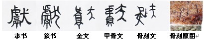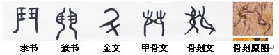 從昌樂(lè)骨刻中可以看出,許多動(dòng)物和飛禽都繪制的很形象而逼真。例如昌樂(lè)骨刻文36號(hào)中是一幅林野中歡快百態(tài)的群鳥(niǎo)圖,66號(hào)中一片竹林邊一只山羊與一只仙鶴正在戲耍,67號(hào)中一頭牛正在悠然自得的前行,72號(hào)中一只幼鹿回頭圖被刻畫(huà)的惟妙惟肖,而3號(hào)中的“狐”、13號(hào)中的“蟲(chóng)”、14號(hào)中的“馬”、“犬”、16號(hào)中的“鳥(niǎo)”、42號(hào)中的“兔”、54號(hào)中的“鼠”、66號(hào)中的“羊”、67號(hào)中的“!钡龋碱H為形象。筆者研究發(fā)現(xiàn),這些均被甲骨文和金文所借鑒,有的基本上原樣成字?梢钥闯,長(zhǎng)期以來(lái),東夷人與動(dòng)物和平共處,與動(dòng)物相互影響,而且很多動(dòng)物的行為被人類(lèi)所借鑒,動(dòng)物文化也被文化動(dòng)物所研究,并且還據(jù)此創(chuàng)造出了中國(guó)最早的文字。而同一時(shí)期的周邊文化雖有類(lèi)似文字的符號(hào)出現(xiàn),但均與六書(shū)之首的象形字相去甚遠(yuǎn),距離演變成漢字還有較遠(yuǎn)的路程,極有可能在漢字演化過(guò)程中被優(yōu)化掉了。而東夷半文半畫(huà)的“形象畫(huà)”則被首選為“象形字”。